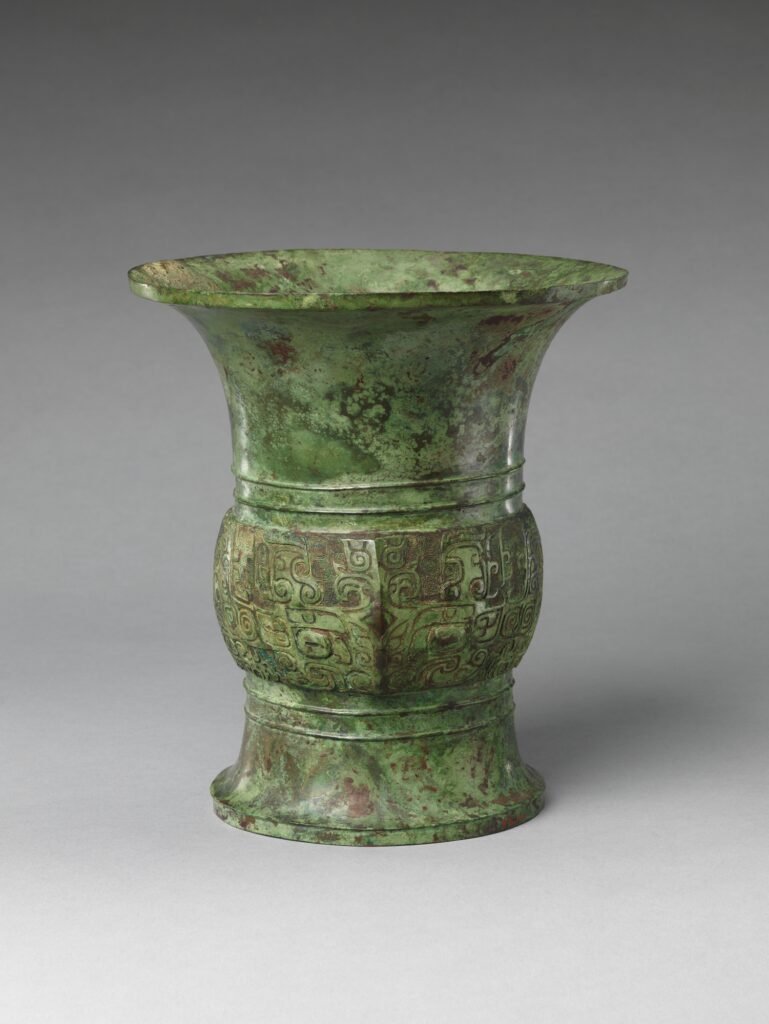 These vessels were cast for ceremonies that connected the living with their ancestors. Placed on altars and used in offerings of food and wine, they formed part of a highly structured ritual system in which lineage, memory, and power were inseparable.
