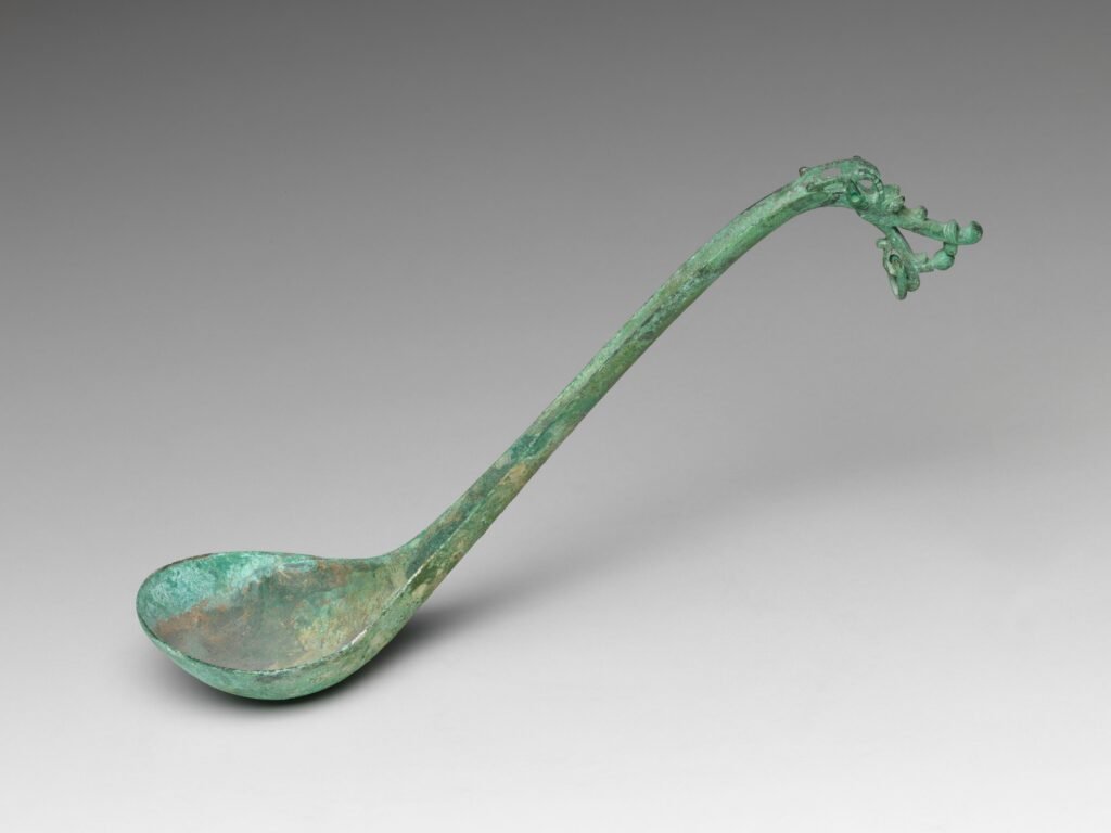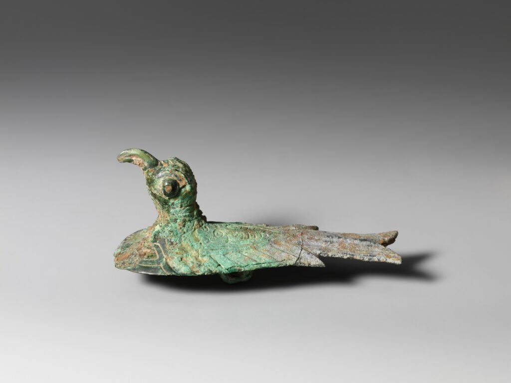 Buried in tombs or preserved through generations, its surface develops a patina — ranging from deep brown to vivid green and turquoise. This is the result of long-term chemical interaction with the environment, particularly soil composition and moisture.