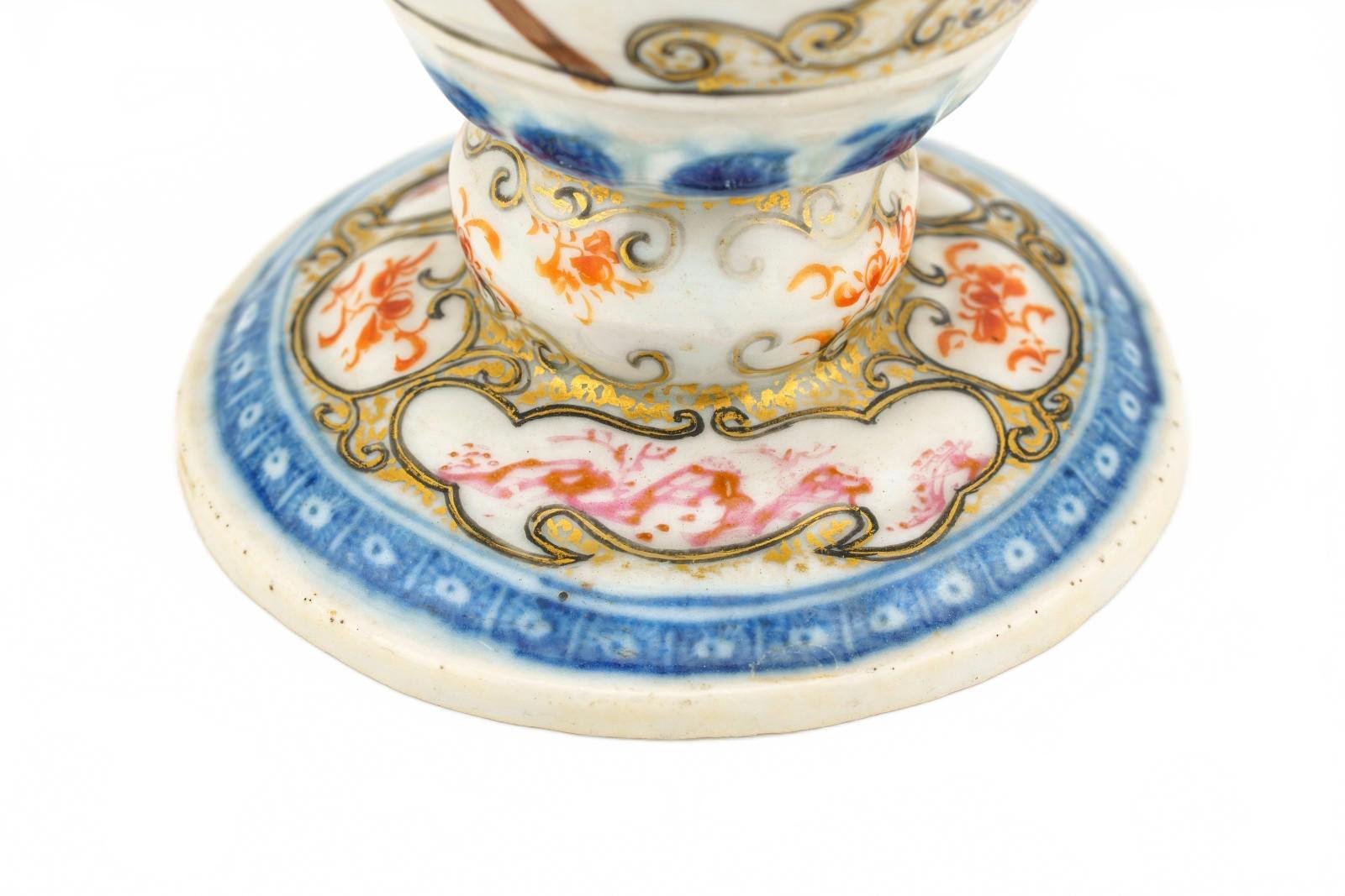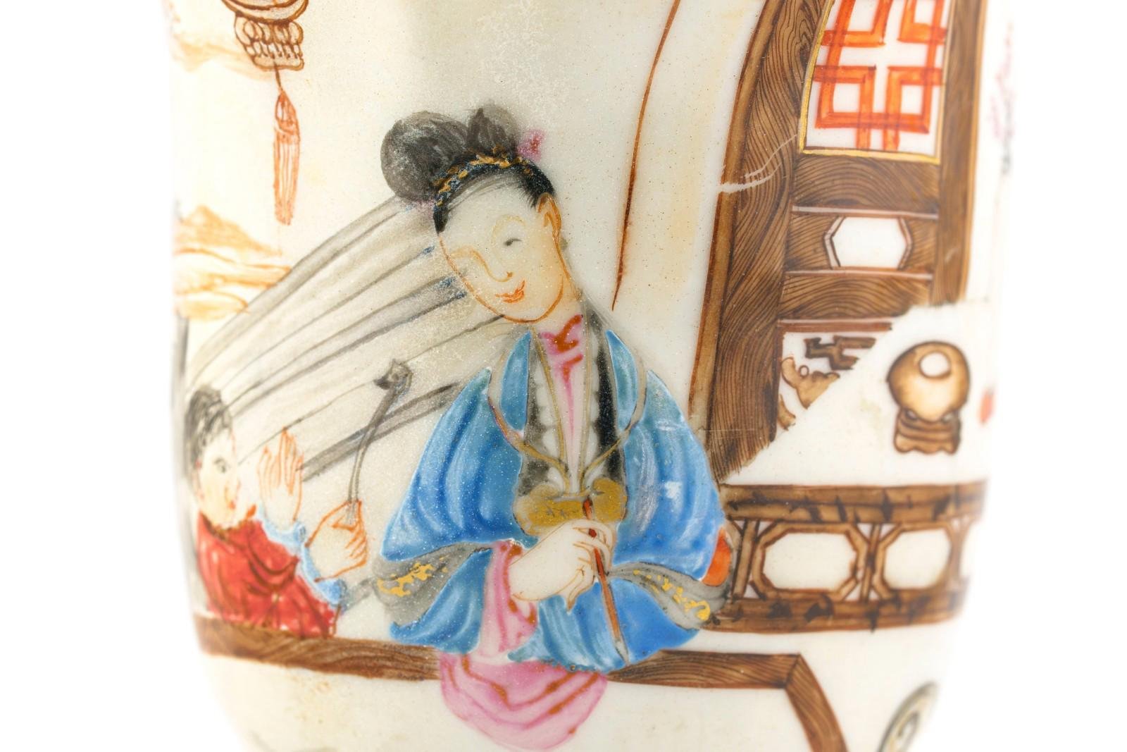 🅂 Subject Famille Rose decoration with Mandarin Figures in interior scenes with gilt scrollwork