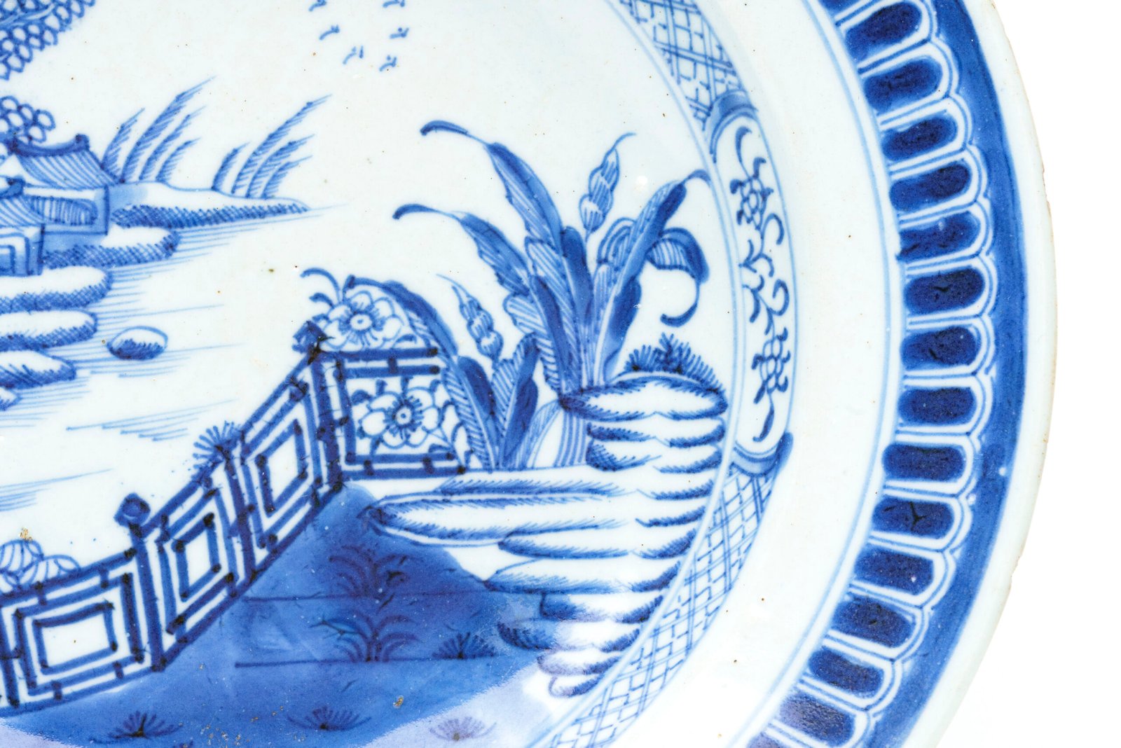 Chinese Porcelain Plate Blue White Landscape Diaper Border Qianlong Qing 18C