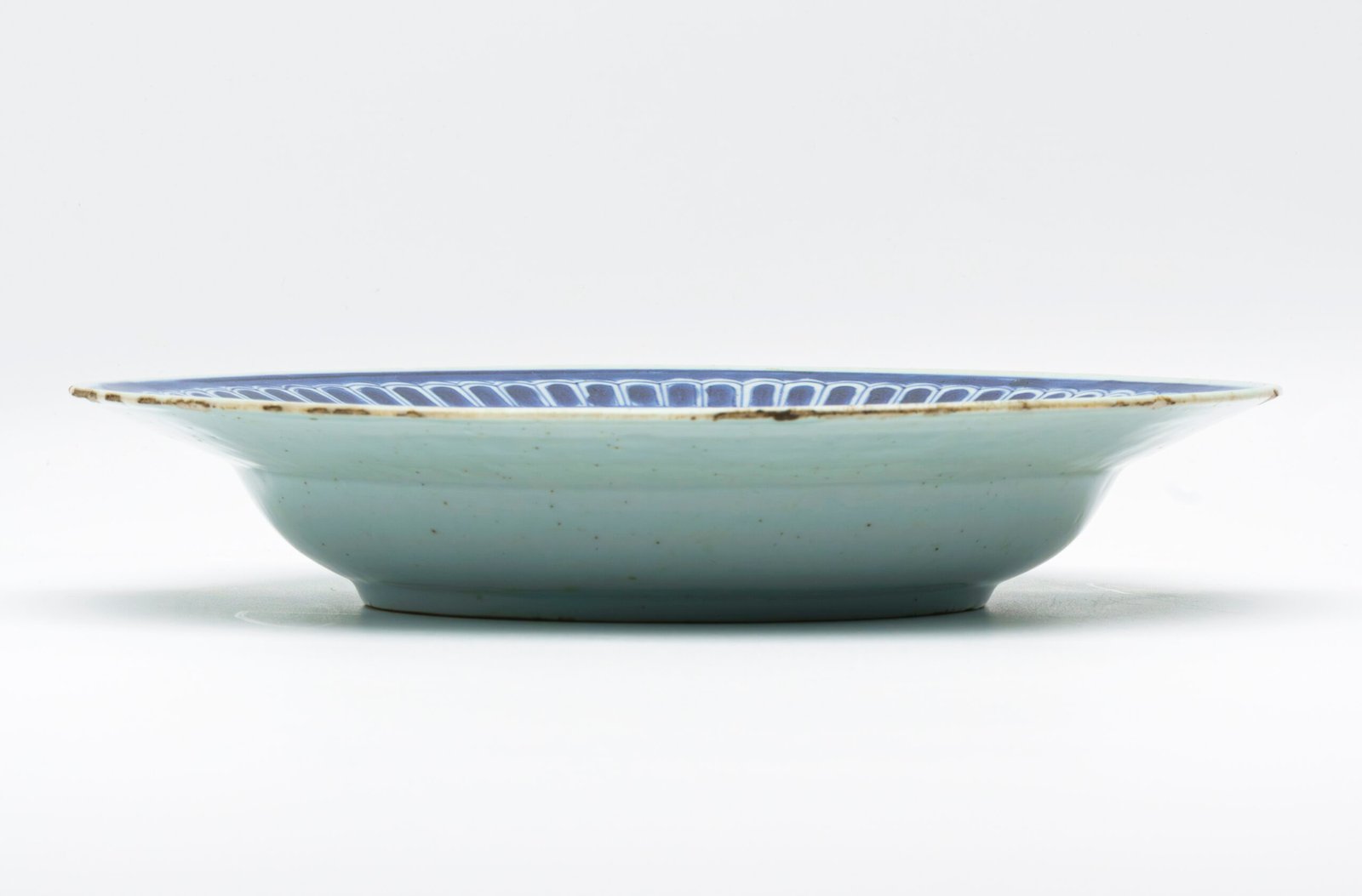 📜 Description Elegant Chinese Porcelain Blue & White underglaze. The central roundel depicts a tranquil Landscape with a small pavilion, fenced terrace, rock formations and stylized plants, evoking classical Chinese garden scenery. The cavetto is framed with a delicate diaper border, while the rim features a bold repeating lappet design, typical of refined Qianlong period decoration. The cobalt blue tones show good variation, with careful brushwork and shading. The reverse reveals a smooth pale glaze with kiln grit and minor firing imperfections consistent with Qing Dynasty production. Collector’s Notes: Qianlong period Blue & White Porcelain is celebrated for its balanced compositions and crisp decorative borders. Landscape scenes such as this reflect scholarly ideals and garden culture, making them highly desirable among collectors of 18th Century Chinese ceramics.