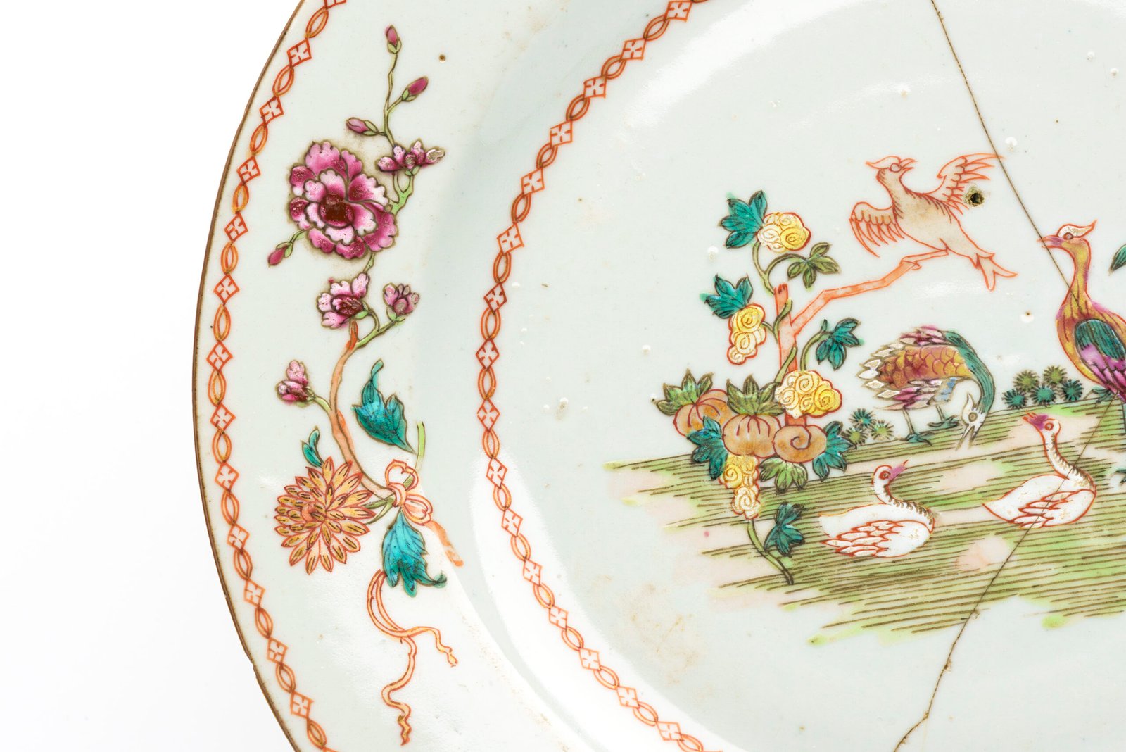 Chinese Qianlong Porcelain Plate Famille Rose Gilt European Aqua Birds Qing 18C